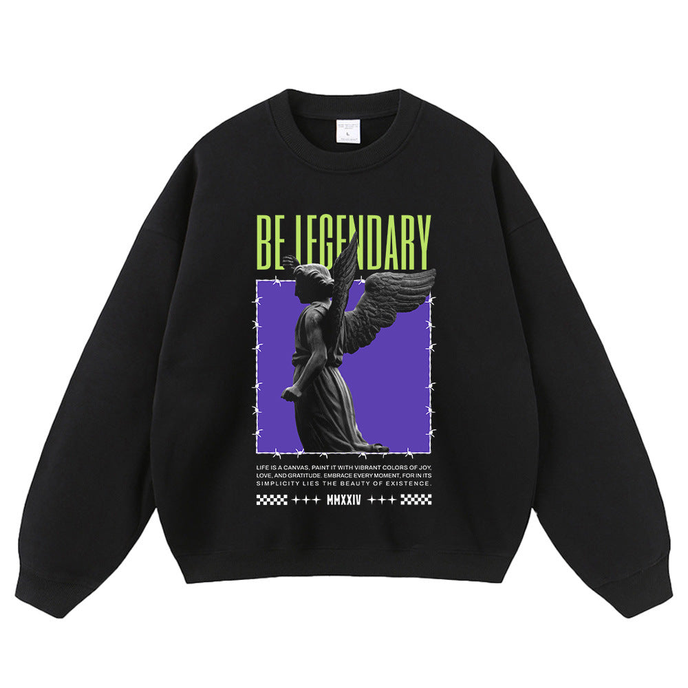 Angel Statue Print Crewneck Sweatshirts